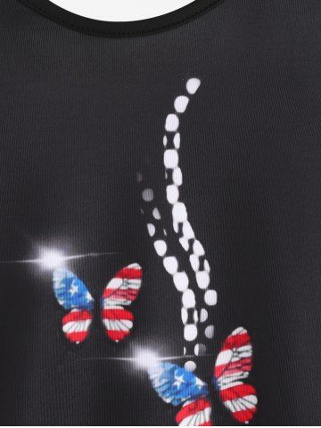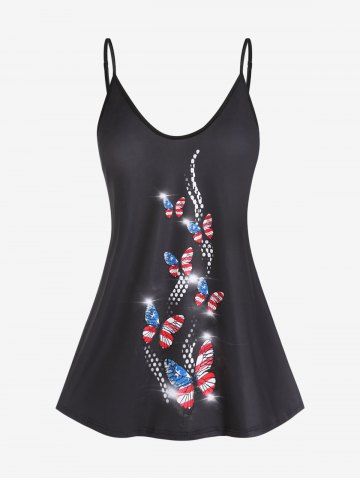 S*****y5Plus Size & Curve American Flag Butterfly Print Patriotic Tank TopColor: BLACK Size: XLLove this material for hot summer days. I bought the bottoms to go with it and wore it for 4th of July and got so many compliments!