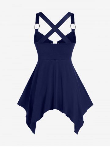 Plus Size Lace Up Zipper Crisscross Handkerchief Tank Top