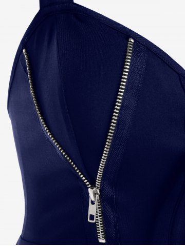 Débardeur Mouchoir Zippé Croisé Grande Taille à Lacets - Bleu Profond - 2x | Us 18-20