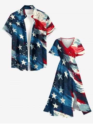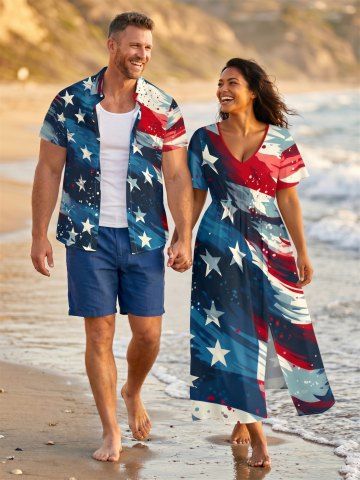 4th Of July Outfits> Ensemble assorti grande taille à imprimé drapeau américain patriotique pour couples