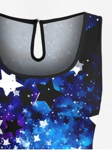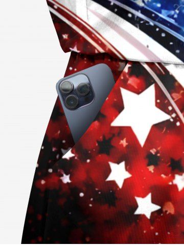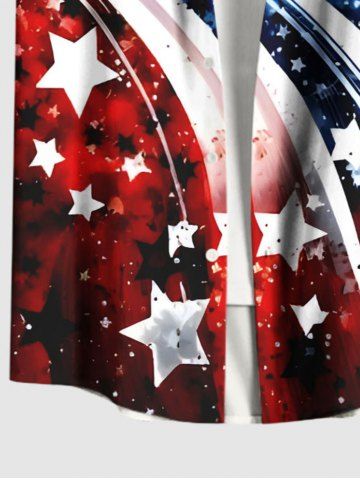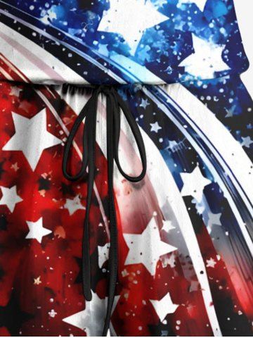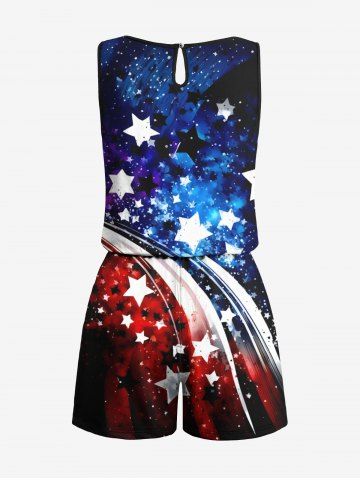 Ensemble chemise et barboteuse assortis pour le jour de l'indépendance, tenue de plage grande taille, imprimé drapeau américain patriotique pour couples - Bleu - Bleu
