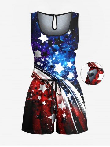4th Of July Outfits> Ensemble chemise et barboteuse assortis pour le jour de l'indépendance, tenue de plage grande taille, imprimé drapeau américain patriotique pour couples