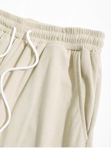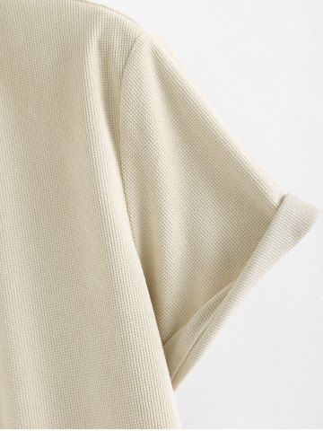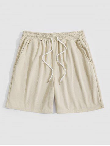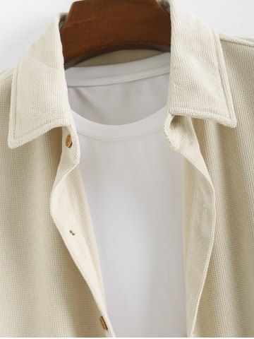 Ensemble de Deux Pièces Décontracté Bouotnnée à Manches Courtes en Velours Côtelé à Cordon - Café Lumière - S