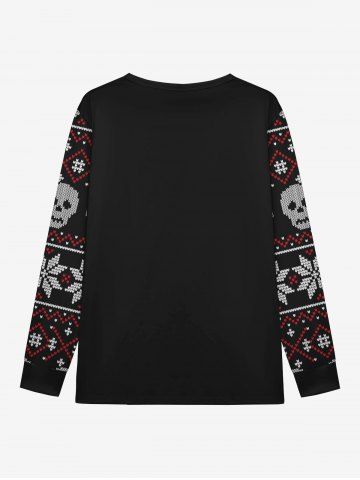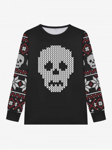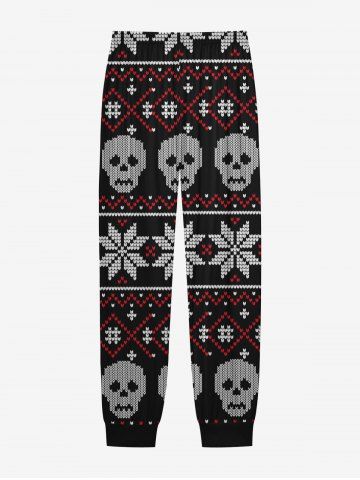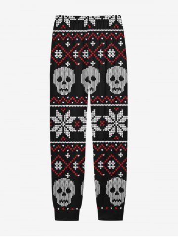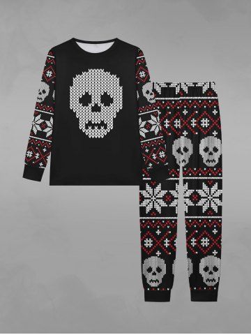 Ensemble de Pyjama en Tricot Gothique Imprimé Flocons de Neige et Crânes 3D pour Hommes - Noir - Noir