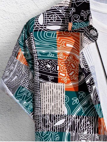 Ensemble de Short de Base Ethnique Motif Rayé Fleuri Imprimé en Blocs de Couleurs Manches Courtes à Cordon - Vert Profond - Xl