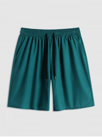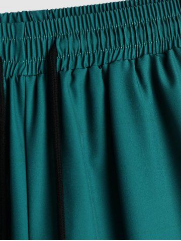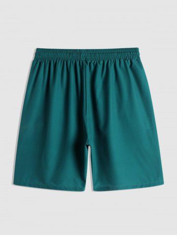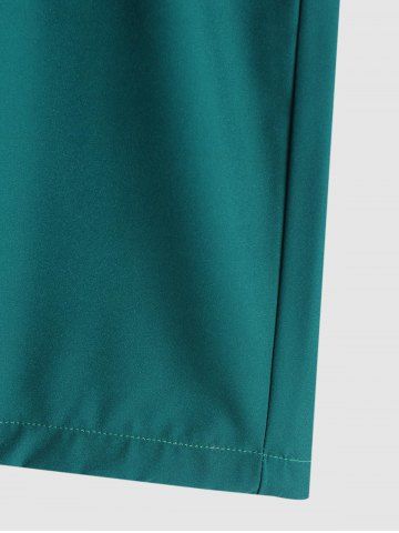Ensemble de Short de Base Ethnique Motif Rayé Fleuri Imprimé en Blocs de Couleurs Manches Courtes à Cordon - Vert Profond - M