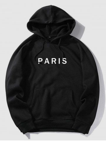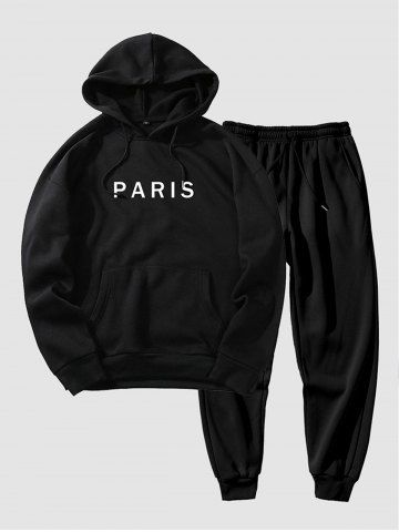 Ensemble Sweat à Capuche en Molleton Minimaliste Motif PARIS et Pantalon de Jogging avec Poche Kangourou pour Homme - Noir - Noir