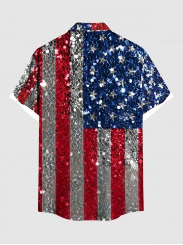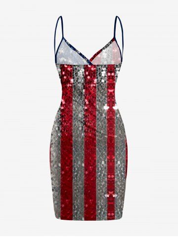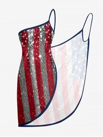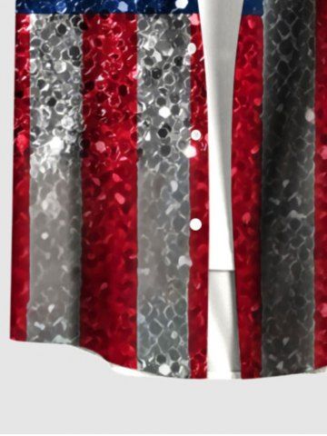 Glitter Sequins Patriotic American Flag Print Plus Size Matching Outfit For Couples - Rouge - Rouge