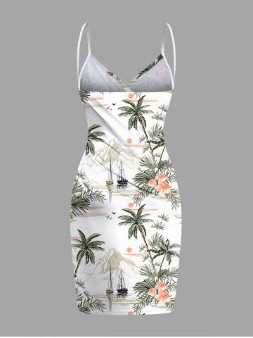 Graphic Swimwear > Housse de plage hawaïenne convertible grande taille à imprimé cocotier, hibiscus, fleur, soleil et bateau