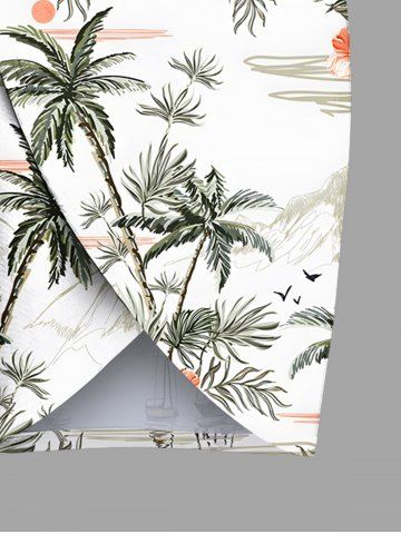 Housse de plage hawaïenne convertible grande taille à imprimé cocotier, hibiscus, fleur, soleil et bateau - Blanc - Blanc
