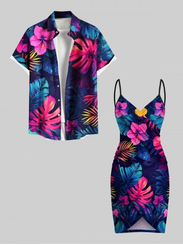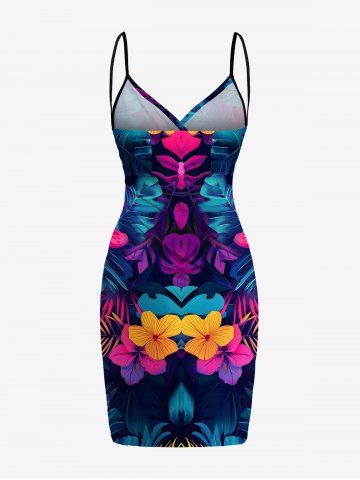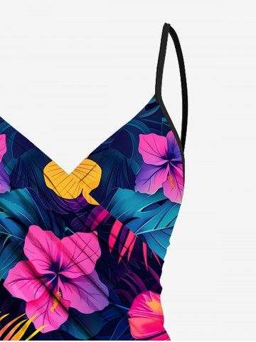 Graphic Swimwear > Housse de plage hawaïenne convertible grande taille à imprimé feuilles tropicales et fleurs d'hibiscus
