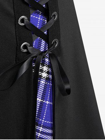 Jupe Gothique Superposée à Carreaux à Chaîne à Lacets - Bleu Cobalt - 1x | Us 14-16