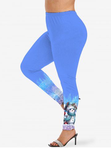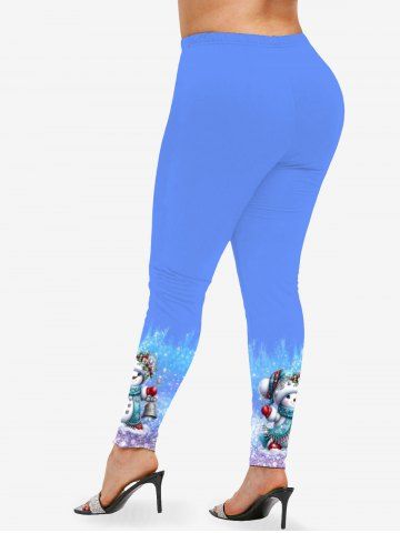 Legging 3D Cloche et Flocon de Neige Noël Imprimés de Grande Taille à Paillettes - Bleu Ciel - Bleu Ciel
