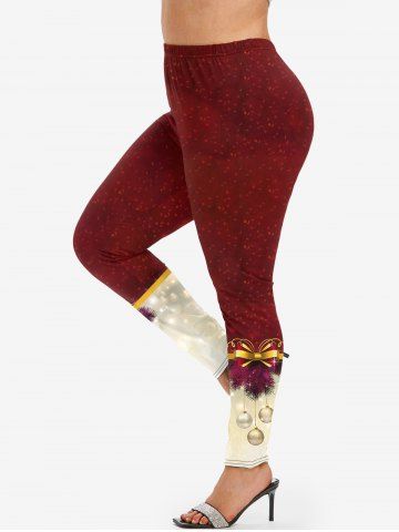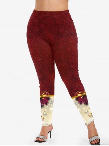 Legging à Imprimé Sapin de Noël et Boule de Grande Taille avec Nœud Papillon - Rouge Foncé - 5x | Us 30-32
