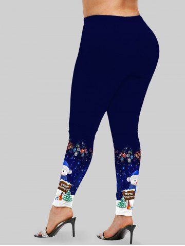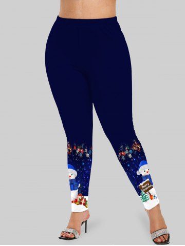 Legging Brillant 3D Etoile Sapin de Noël Bonhomme de Neige et Boule Imprimés Grande Taille à Paillettes - Bleu Profond - 5x