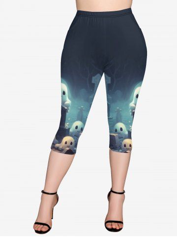 Legging Capri Gothique Squelettes Point D'Insecte Imprimé avec Poches - Noir - Noir