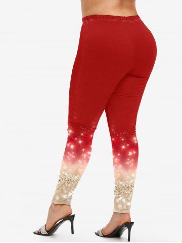 Legging de Noël Moulant à Imprimé Brillant de Grande Taille - Rouge - Rouge