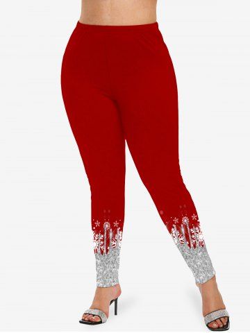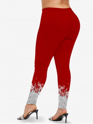 Legging Moulant 3D Flocon de Neige Noël Imprimé à Paillettes - Rouge - Rouge
