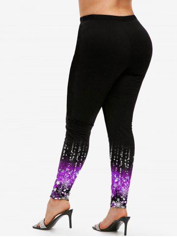 Leggings Skinny à Imprimé Flocon de Neige et Renne de Noël 3D Grande Taille - Pourpre - Pourpre