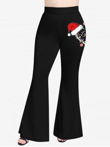 Pantalon évasé à imprimé cœur et flocon de neige léger pour chapeau de Noël grande taille - Noir - Noir