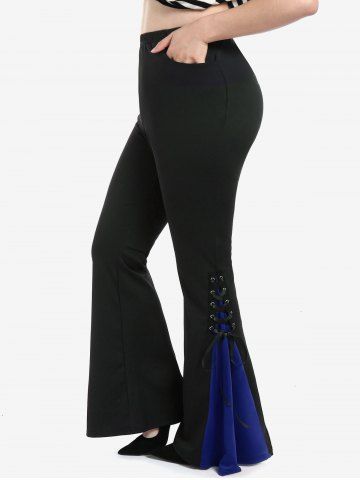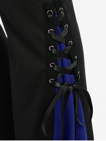 c*****s5Gothic Bell Sleeve Skull Lace Handkerchief Tee and Lace Up Contrast Godet Hem Flare Pants OutfitColor: BLACKtrue to size but will have to reorder the top and pants as I continue to loose weight. Comfortable and light weight material.