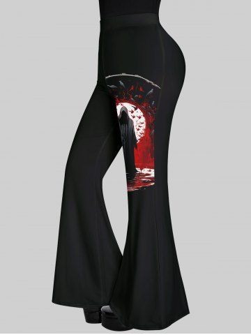 Pantalon Evasé D'Oiseau Imprimé Style Gothique - Noir - Noir