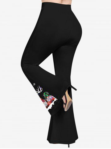 Pantalon évasé grande taille avec boule de sapin de Noël, bonnet en pain d'épices, nains, imprimé flocon de neige - Noir - Noir
