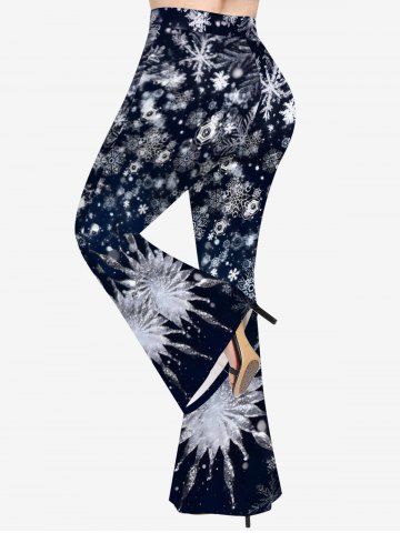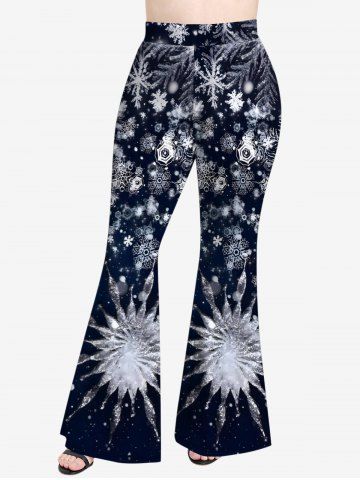 Pantalon évasé imprimé 3D flocons de neige et galaxie grande taille - Bleu Marine - Bleu Marin