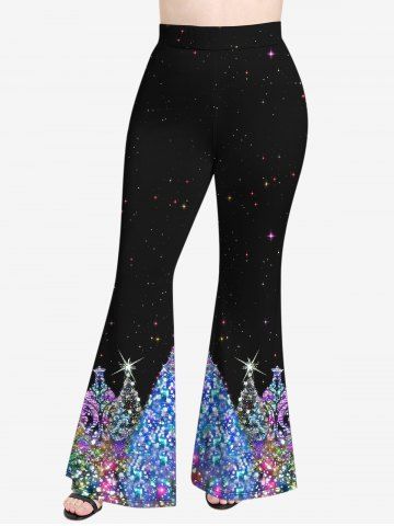 Pantalon Évasé Imprimé Arbre de Noël et Galaxie à Paillettes 3D Grande Taille - Multi-a - L