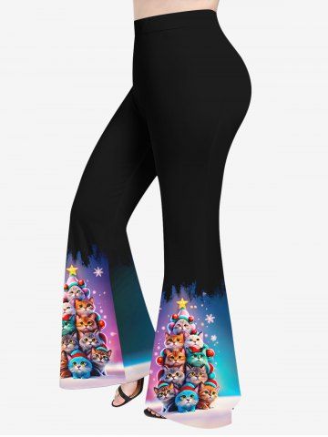 Bottoms > Pantalon Évasé Ombré Imprimé Sapins de Noël et Flocons de Neige Grande Taille