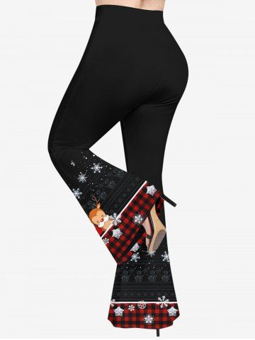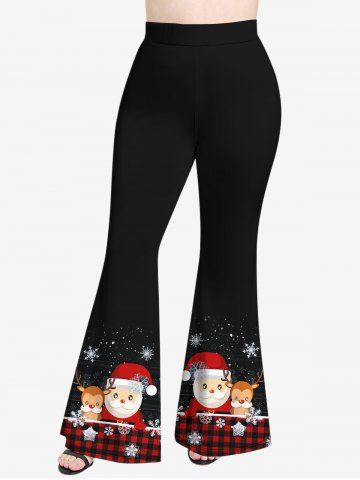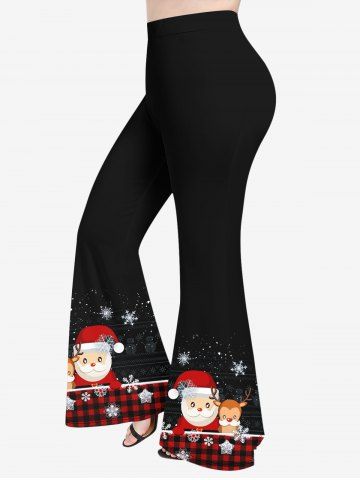 Pantalon Evasé Père Noël à Carreaux et Flocon de Neige Imprimés de Grande Taille - Noir - Noir