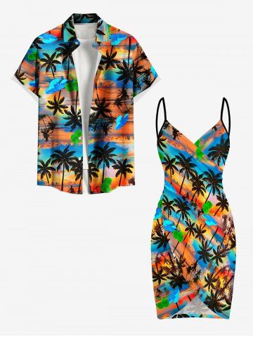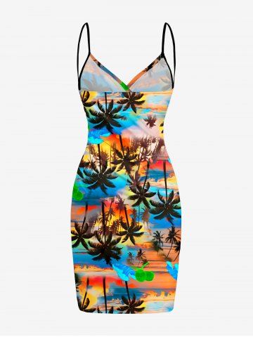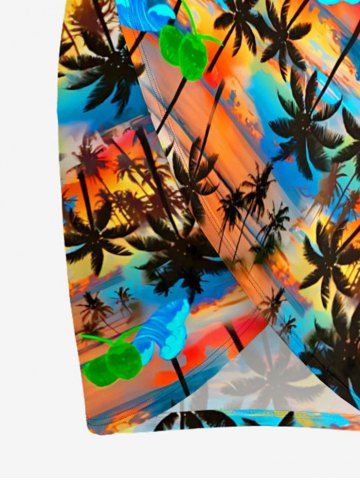 Paréo de plage convertible grande taille à imprimé coucher de soleil ombré avec cocotiers et nuages, style hawaïen - Multi - Multi
