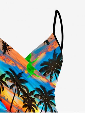 Graphic Swimwear > Paréo de plage convertible grande taille à imprimé coucher de soleil ombré avec cocotiers et nuages, style hawaïen