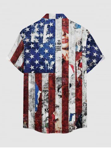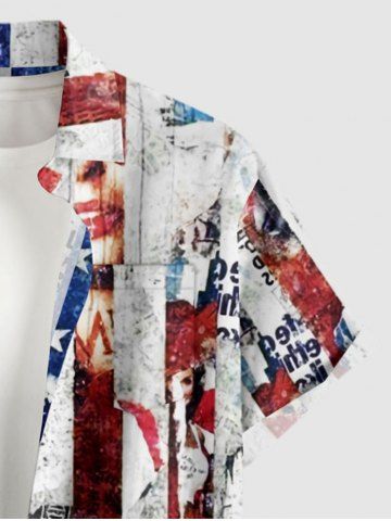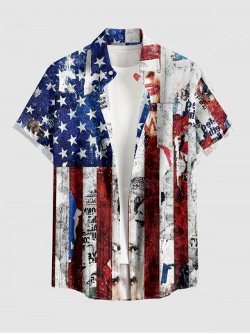 Patriotic American Flag Newspaper Print Plus Size Matching Outfit For Couples - Bleu - Bleu