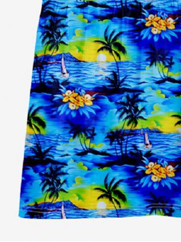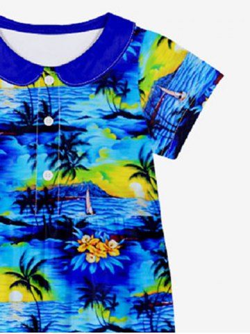 Robe D'entraînement Imprimée Cocotier à Col Rabattu à Boutons - Bleu Ciel - Bleu Ciel