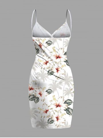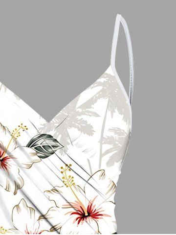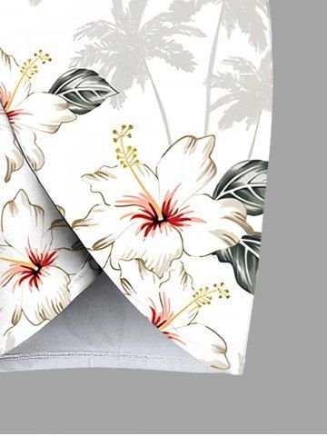 Robe de plage convertible grande taille à imprimé cocotier et fleurs d'hibiscus hawaïennes - Blanc - Blanc