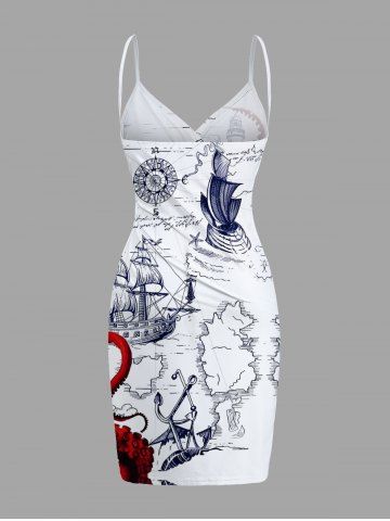 Robe de plage convertible grande taille à imprimé pieuvre, voilier et ancre, croisière hawaïenne - Blanc - Blanc