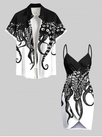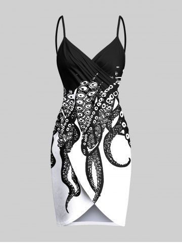 Graphic Swimwear > Robe de plage convertible hawaïenne bicolore à imprimé pieuvre grande taille
