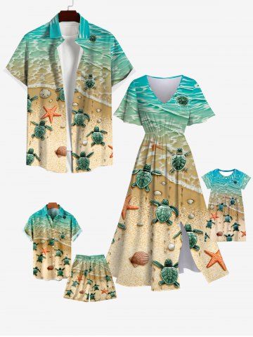 Dresses & Jumpsuits> Robe de Plage Hawaïen Coquille Etoile de Mer et Tortue Imprimées pour Enfant