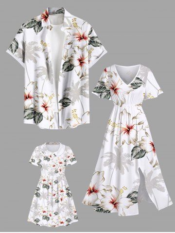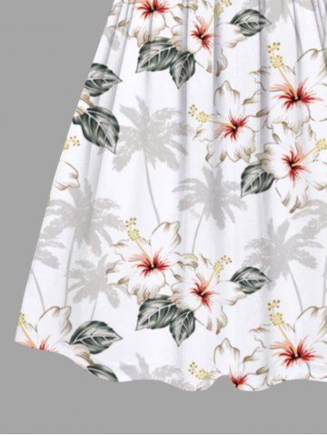 Robe enfant à boutons, imprimé feuilles d'hibiscus et cocotiers, style hawaïen - Blanc - Blanc