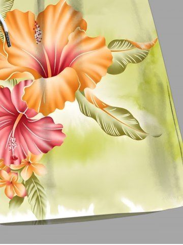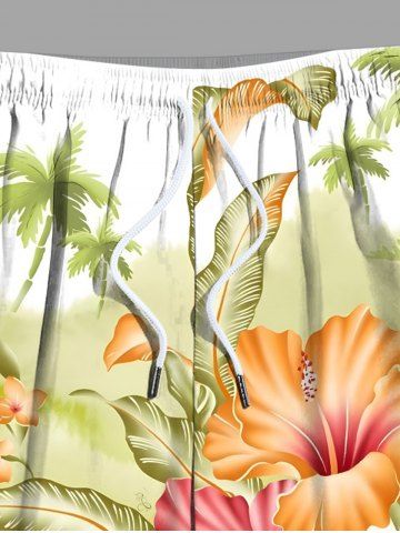 Short de plage hawaïen grande taille à imprimé cocotier, feuilles tropicales, fleurs d'hibiscus, pour homme - Vert - Vert