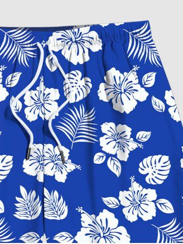 Short de Plage Hawaiien Fleur et Noix de Coco Imprimés de Grande Taille avec Poche - Bleu - Bleu