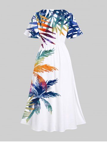 Tenues assorties pour chien et propriétaire hawaïens à imprimé feuilles de cocotier coloré - Blanc - Blanc