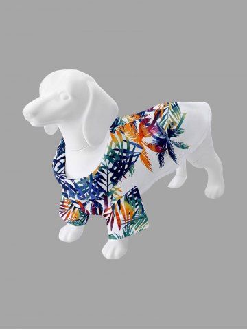 Dog And Owner Matching Outfits> Tenues assorties pour chien et propriétaire hawaïens à imprimé feuilles de cocotier coloré