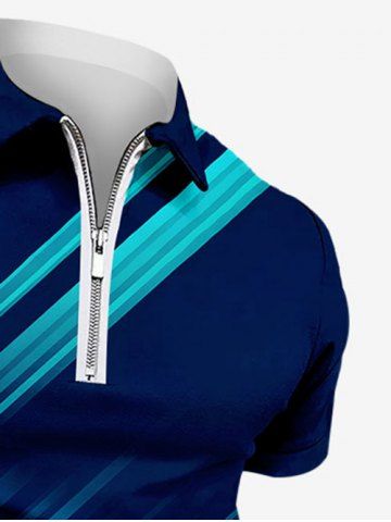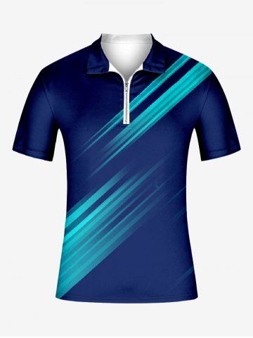 T-shirt Zippé Imprimé à Col Bateau à Lumière Grande Taille pour Homme - Bleu Profond - 6xl
