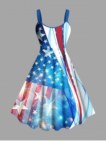 Tenue de plage hawaïenne assortie grande taille, motif drapeau américain patriotique, faisceau lumineux, imprimé 3D, pour couples - Bleu Clair - Bleu Clair