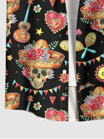 Chemise à Manches Courts> Chapeau de Danse Couverture et Bonbons Motif Cœurs Fleurs avec Poches Bordurées pour Hommes