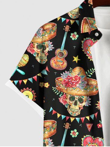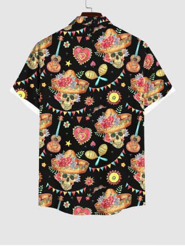 Chemise à Manches Courts> Chapeau de Danse Couverture et Bonbons Motif Cœurs Fleurs avec Poches Bordurées pour Hommes