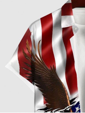 Chemise à Manches Courts> Chemise 3D Aigle Drapeau Américain Imprimé de Grande Taille avec Poche à Paillettes