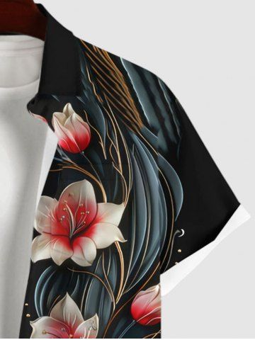 Chemise à Manches Courts> Chemise 3D Fleur et Lumière Imprimées de Grande Taille avec Poche Frontale pour Homme